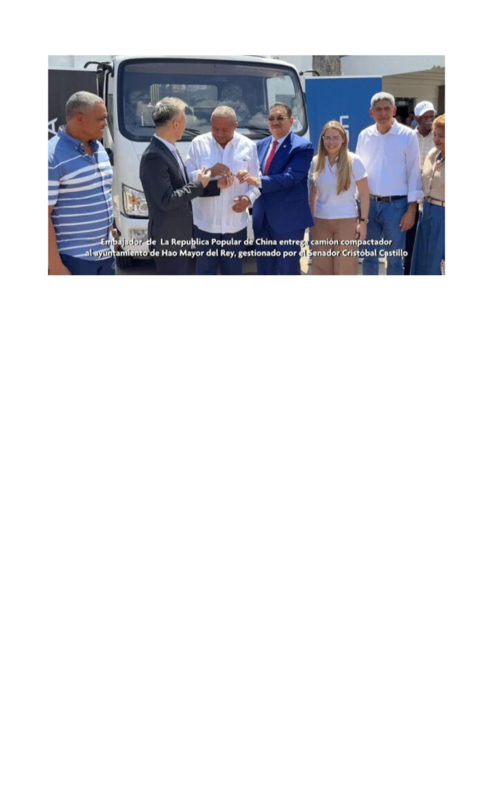 Hato Mayor del Rey, R.D. – El embajador de la República Popular China en el país hizo entrega formal de un camión compactador de desechos sólidos al Ayuntamiento Municipal de Hato Mayor del Rey.